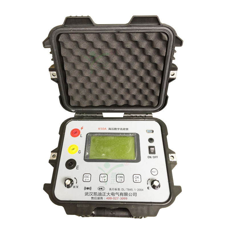 KD50A高壓絕緣電阻測試儀具有50V、100V、250 V、500V、1.0kV、2.5kV、5.0kV、10.0kV共8個電壓輸出檔,測試最大可達(dá)10TΩ。容量大、抗干擾強(qiáng)、液晶屏同步顯示、交直流兩用、操作簡單、自動計算各種絕緣指標(biāo)、吸收比、極化指數(shù)、各種測量結(jié)果具有防掉電功能等特點。是測量大容量變壓器、互感器、發(fā)電機(jī)、高壓電動機(jī)、電力電容、電力電纜、避雷器等絕緣電阻的測試儀器。