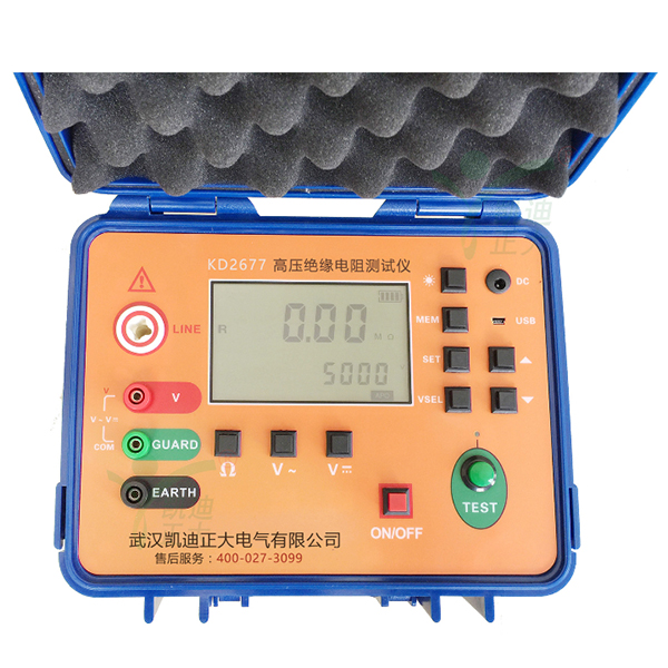KD2677高壓絕緣兆歐表又名高壓絕緣電阻表,用于絕緣電阻的測試。本儀表具有大屏幕LCD灰白背光顯示、數(shù)據(jù)存儲(chǔ)、數(shù)據(jù)查閱、報(bào)警、自動(dòng)放電、充電、自動(dòng)關(guān)機(jī)等功能。同時(shí)還具備測量直流電壓交流電壓吸收比和極化指數(shù)功能。整機(jī)美觀高檔,量程寬廣,分辨率高,操作便捷,攜帶方便,準(zhǔn)確、可靠、性能穩(wěn)定,輸出功率大,抗干擾能力強(qiáng)。