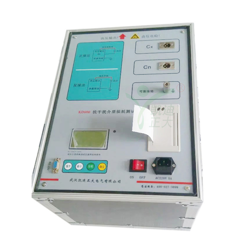 KD600B介質損耗測試儀是發(fā)電廠、變電站等現(xiàn)場自動測量各種高壓電力設備介損正切值及電容量的高精度儀器。由于采用了變頻技術能保證在強電場干擾下準確測量。儀器采用中文菜單操作,微機自動完成測量。