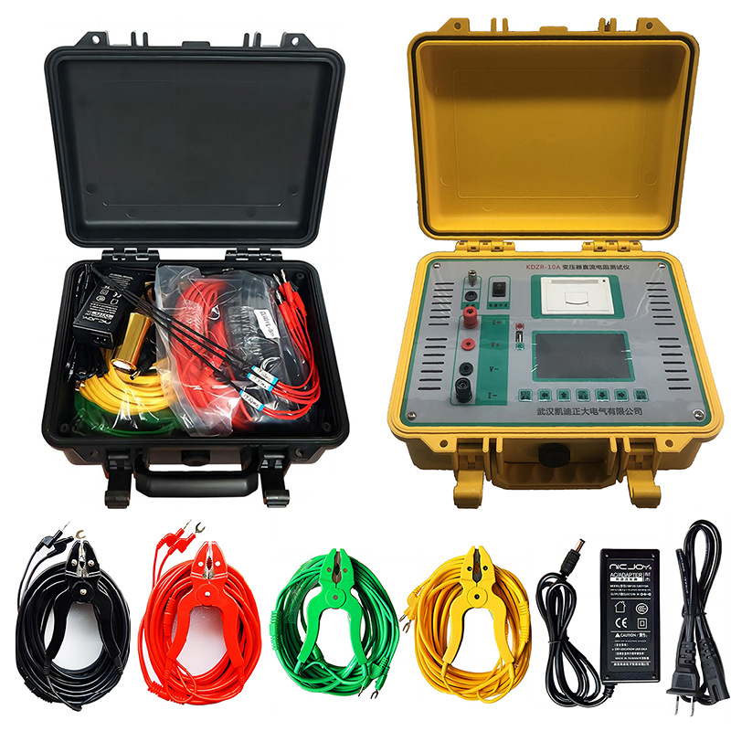 KDZR-10A變壓器直流電阻測(cè)試儀是取代直流單、雙臂電橋的高精度換代產(chǎn)品。直流電阻的測(cè)量是變壓器、互感器、電抗器、電磁操作機(jī)構(gòu)等感性線圈制造中半成品、成品出廠試驗(yàn)、安裝、交接試驗(yàn)及電力部門(mén)預(yù)防性試驗(yàn)的試驗(yàn)項(xiàng)目,能有效發(fā)現(xiàn)感性線圈的選材、焊接、連接部位松動(dòng)、缺股、斷線等制造缺陷,排除裝 置運(yùn)行存在的隱患。為了滿足感性線圈直流電阻快速測(cè)量的需要,我公司利用自身技術(shù)優(yōu)勢(shì)研制了該款直流電阻測(cè)試儀。
