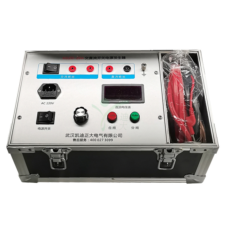 KDZD-20A 交直流開關電源發(fā)生器亦稱高壓開關檢測操作電源,是為對高壓斷路器及其操作機構(gòu)進行檢測維修而設計的專用電源,具有電壓可調(diào)、操作簡單、體積小、攜帶方便等優(yōu)點,是高壓開關檢修不可缺少的檢測工具。