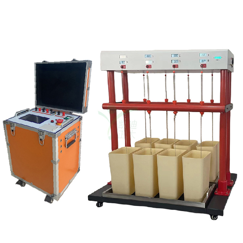 本產(chǎn)品各項指標均符合國標的要求??梢园匆陨系囊?guī)程要求對絕緣鞋、絕緣手套等安全工器具進行智能化絕緣耐壓試驗,每路試品均具有分斷機構,當其中一路擊穿時或超過設定泄漏電流值時,該路試品將自動脫離試驗,并將當前泄漏電流保持顯示,不影響其它試品進行試驗。高低壓分離,泄漏電流采用抗干擾無線傳輸技術傳輸回控制箱,保護人身的安全。