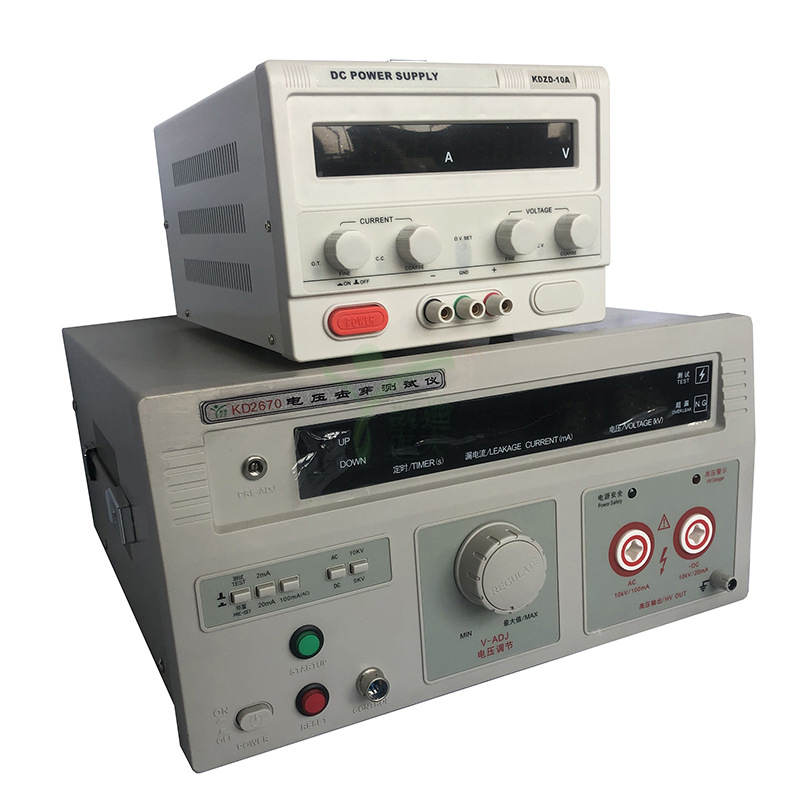 KDZD608A屏蔽服效率測(cè)試裝置由三部分組成:試驗(yàn)主機(jī),加壓電極,接收電極。試驗(yàn)主機(jī)內(nèi)部集成正弦波逆變電源和測(cè)量模塊,使用外部220V交流電源即可產(chǎn)生穩(wěn)定的單相交流600V試驗(yàn)電源并自動(dòng)測(cè)量、計(jì)算試驗(yàn)結(jié)果。