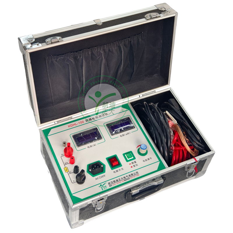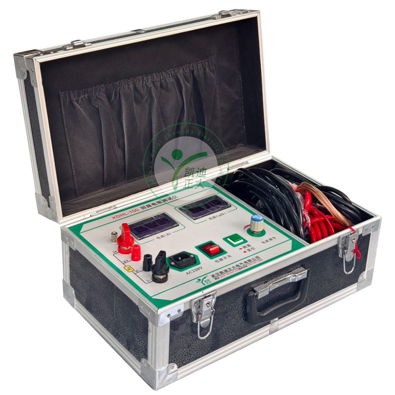 KDHL-100回路電阻測(cè)試儀是采用數(shù)字電路技術(shù)和開關(guān)電源技術(shù)相結(jié)合設(shè)計(jì)而成。它適用于開關(guān)控制設(shè)備的接觸電阻、回路電阻的測(cè)量。其測(cè)試電流采用國(guó)家標(biāo)準(zhǔn)推薦的直流100A??稍陔娏?00A的情況下直接測(cè)得回路電阻和接觸電阻,并用數(shù)字顯示出來(lái)。該儀器測(cè)量準(zhǔn)確、性能穩(wěn)定,適合電力、供電部門現(xiàn)場(chǎng)高壓開關(guān)維修和高壓開關(guān)廠回路電阻測(cè)試得要求。