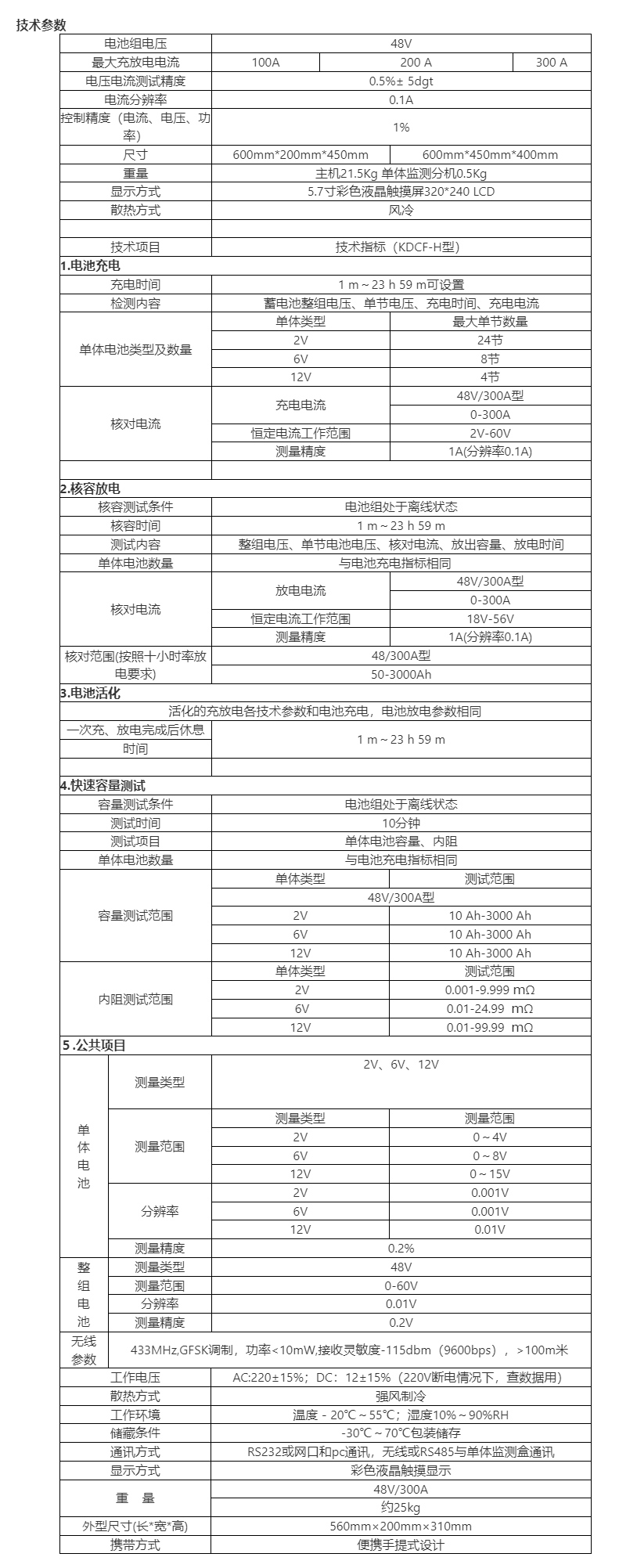 1.可對整組電池進(jìn)行充電、放電、活化、在線監(jiān)測、快速核容;