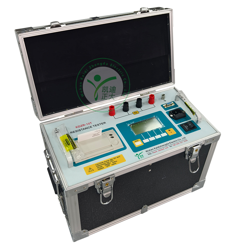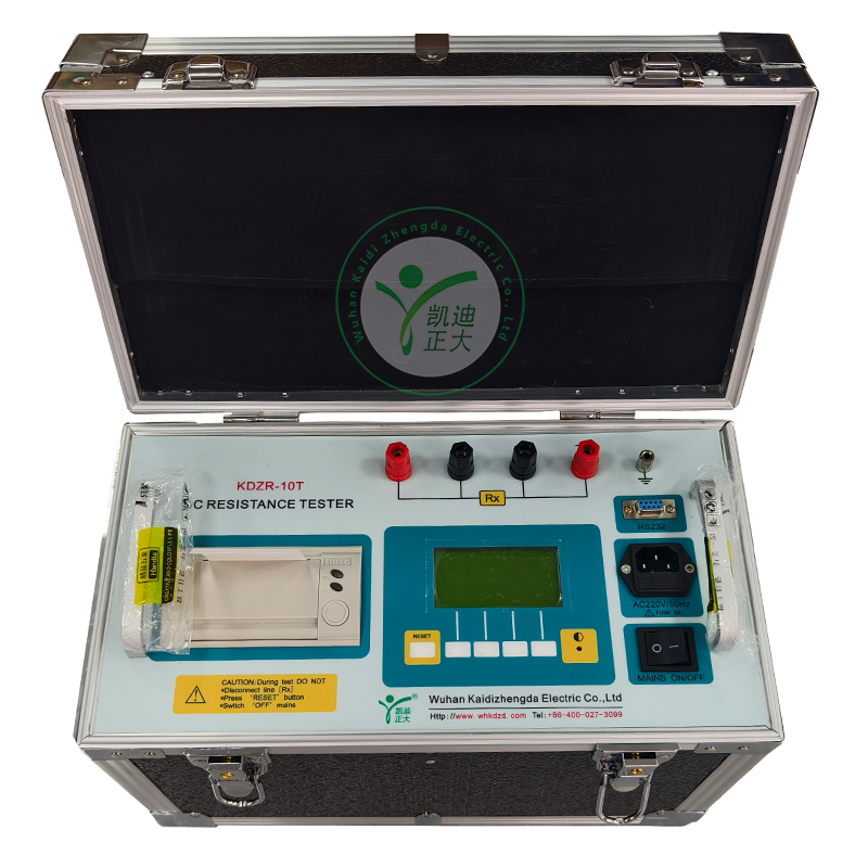 KDZR-10A 直流電阻測試儀采用程控線性恒流源技術,具有輸出電流大,電流檔位多,體積小,重量輕等特點。整機由單片機控制,自動完成自檢、數(shù)據(jù)處理、顯示、保存、打印等功能,采用精密電子測量技術,使得儀器測量精度高,測量范圍寬,操作簡便,可實現(xiàn)變壓器和電壓互感器的感性電阻快速測量。