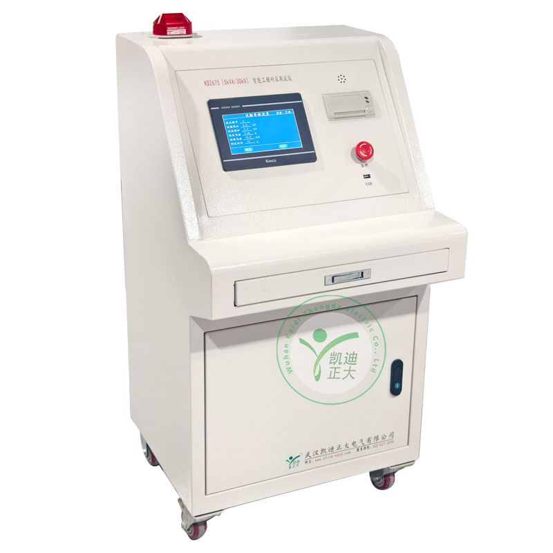 KDYDJ-5kVA/30kV 智能工頻耐壓試驗裝置產(chǎn)品執(zhí)行標準:DL/T 845.1 - 2004。采用微電子芯片處理技術(shù)、觸摸屏控制及無線手機APP操作,操作簡單明了。全部測試參數(shù)設(shè)定后自動進行測試,無需人工干預(yù)。