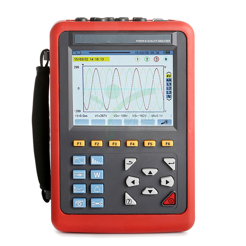 KDZD5000電能質(zhì)量分析儀是我公司精心研制的現(xiàn)場(chǎng)測(cè)試的三相、多功能、智能化、人機(jī)操作簡(jiǎn)潔的綜合型測(cè)試儀器。具有容易使用,超大液晶彩屏顯示,高分辨率,中英文雙語操作界面,防振結(jié)構(gòu)外殼等特點(diǎn)??赏瑫r(shí)測(cè)量4路電流(ABC三相及中性線電流),4路電壓(ABC三相電壓及中性線對(duì)地電壓)、電流電壓的峰值、一段時(shí)間內(nèi)的最大最小值、三相不平衡度、短時(shí)電壓閃變、變壓器K因數(shù)、有功功率、無功功率、視在功率、功率因數(shù)、位移功率因數(shù)、有功電能、無功電能、視在電能、諧波比、總諧波失真度等;顯示電流電壓的實(shí)時(shí)波形、相量圖、諧波比柱形圖;動(dòng)態(tài)捕捉電壓電流瞬時(shí)變化,監(jiān)測(cè)啟動(dòng)電流,監(jiān)測(cè)各電力參數(shù)并生成告警列表,長(zhǎng)時(shí)間記錄測(cè)試數(shù)據(jù)并生成趨勢(shì)曲線圖等功能。