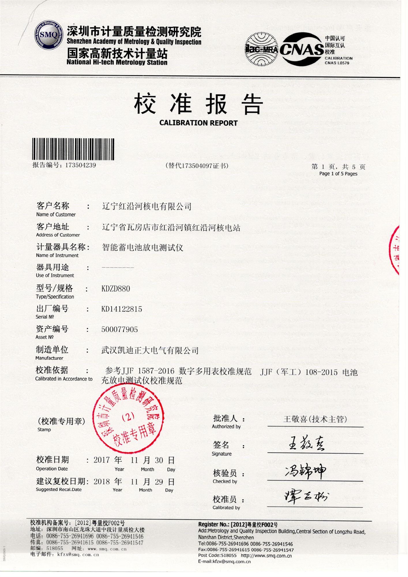 ![]() 湖北省計(jì)量測(cè)試技術(shù)研究院校準(zhǔn)證書 |