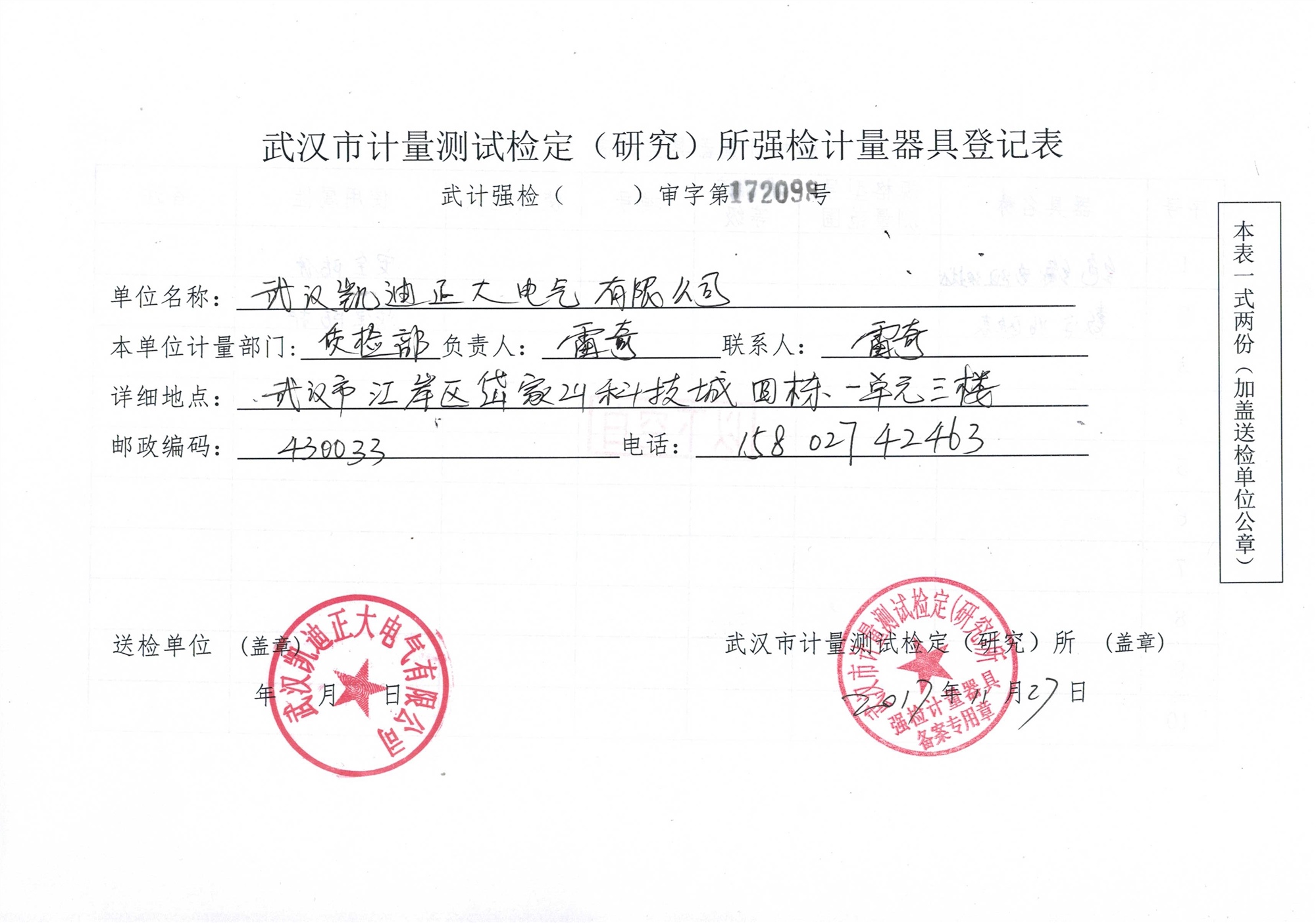 ![]() 武漢市計(jì)量測(cè)試檢定(研究)所“強(qiáng)檢計(jì)量器具證” |