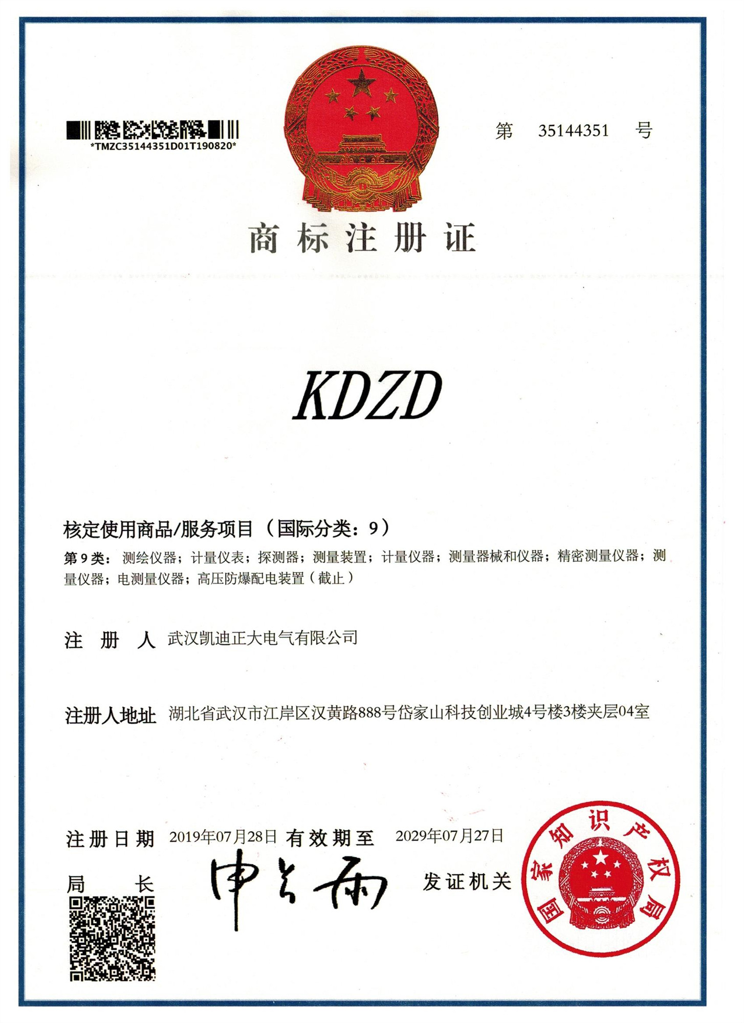 ![]() “KDZD”儀器類商標(biāo)注冊(cè)證 |