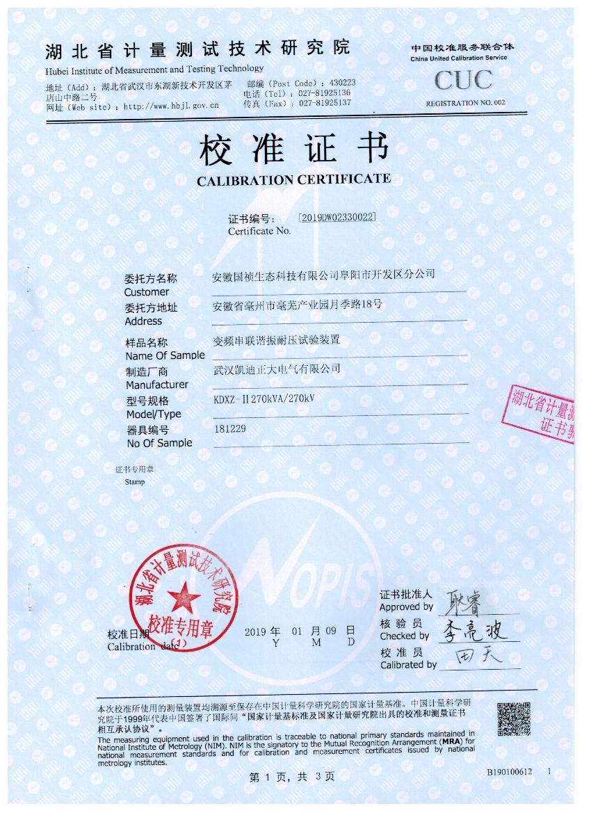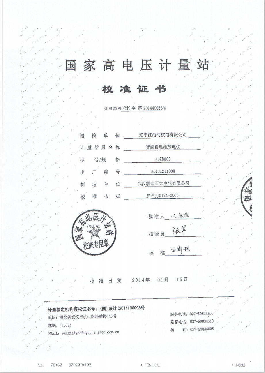 ![]() 國(guó)家高電壓計(jì)量站-KDZD880校準(zhǔn)證書 |