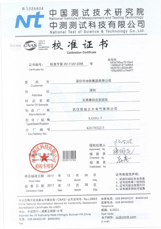![]() 中國(guó)測(cè)試技術(shù)研究院-KDHG互感器儀校準(zhǔn)證書 |