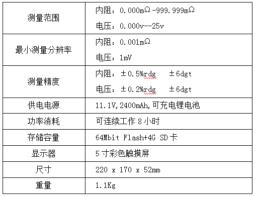 凱迪正大KDZD818蓄電池內(nèi)阻測試儀技術參數(shù):