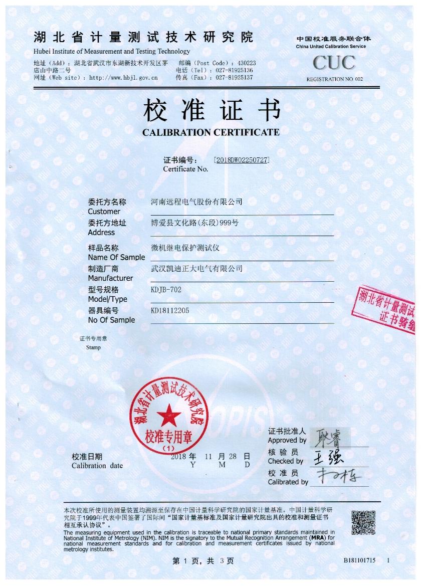 KDJB微機(jī)繼電保護(hù)測(cè)試儀取得研究院專業(yè)校準(zhǔn)證書
