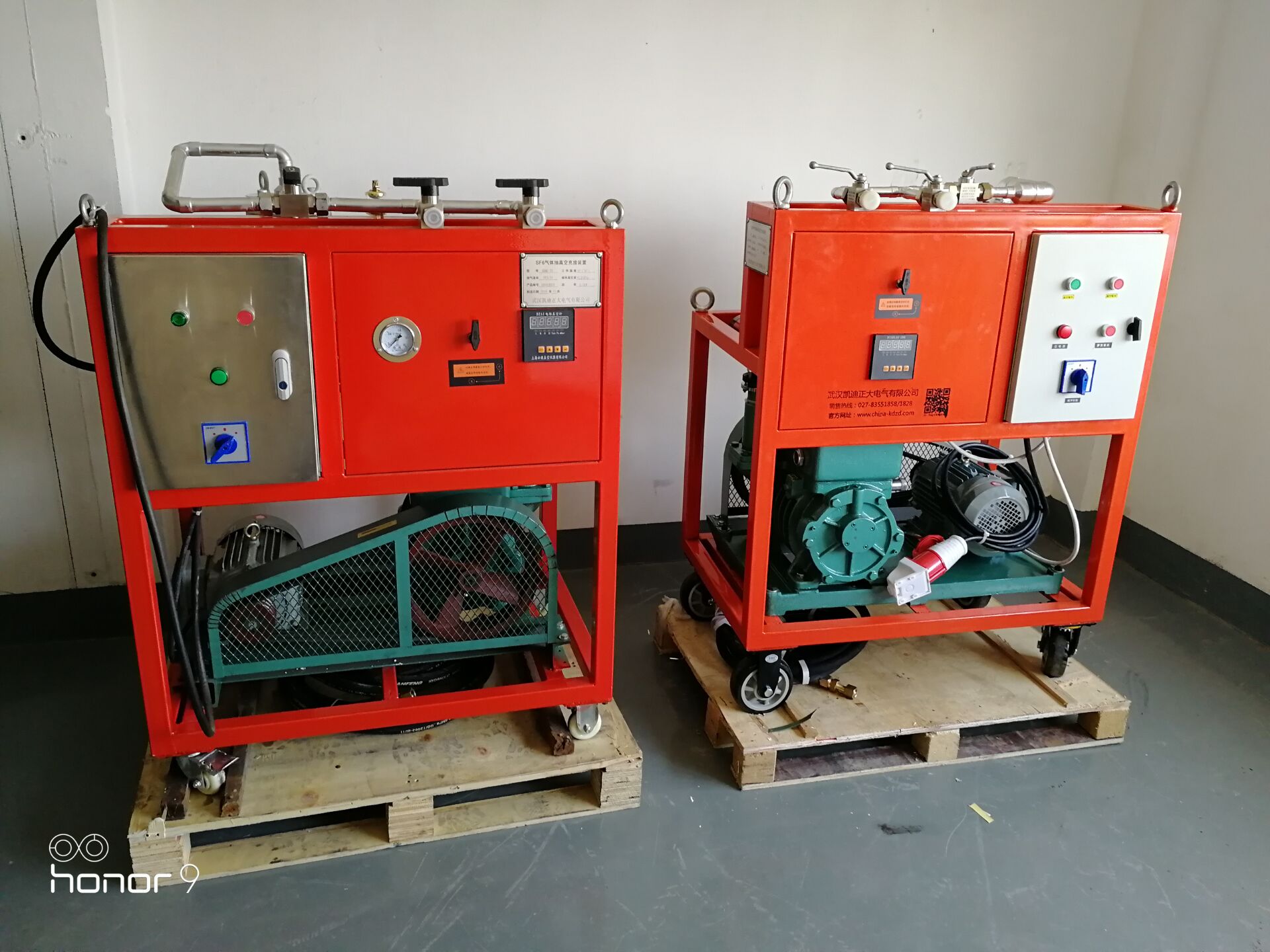 SF6氣體抽真空充氣裝置:KDQC-33抽氣速率≥45L/s;風(fēng)冷手推移動(dòng)式,前級(jí)真空泵(抽氣速率(54m3/h;)極限真空10(裝置極限)(Pa)功率2.2kW;)羅茨真空泵(抽氣速率70L/s;極限真空≤10Pa;功率0.75kW);電源三相五線制 3Φ 380V;總功率≤3kW;噪聲≤60dB(A);重量200kg;尺寸(長*寬*高)82 cm *55 cm *115cm
