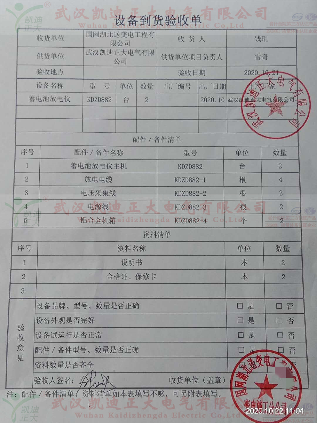 賀KDZD882放電儀獲國網(wǎng)湖北送變電公司驗收合格