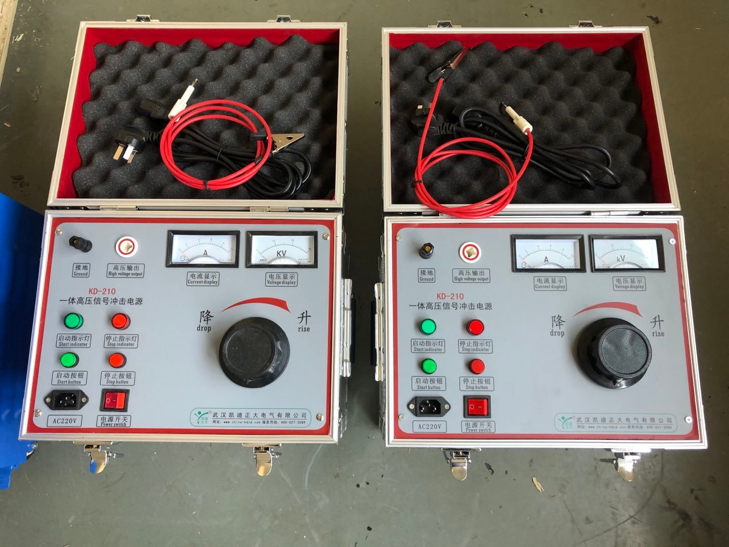 KD-210電纜測試高壓信號發(fā)生器,為電纜故障測距、定點提供高壓信號源,替代操作箱(調(diào)壓器)和油浸式試驗變壓器的接線繁瑣、笨重的設備。與大部分電氣公司生產(chǎn)的電力電纜故障測距儀、數(shù)字式多功能電纜故障定點儀配和使用,可以進行對電纜故障進行:脈沖電流測距、聲磁同步精確定點。