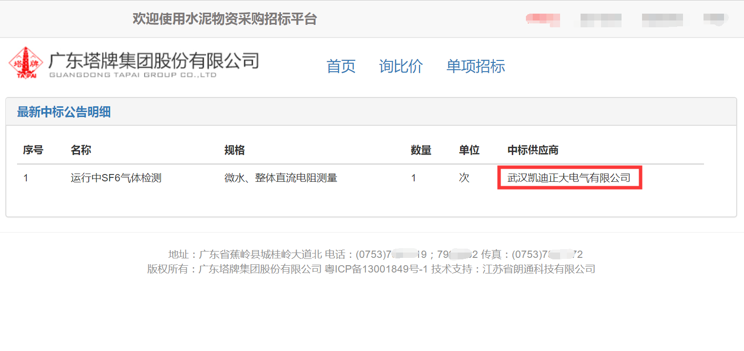 祝賀我司中標(biāo)塔牌集團(tuán)運(yùn)行中SF6氣體檢測