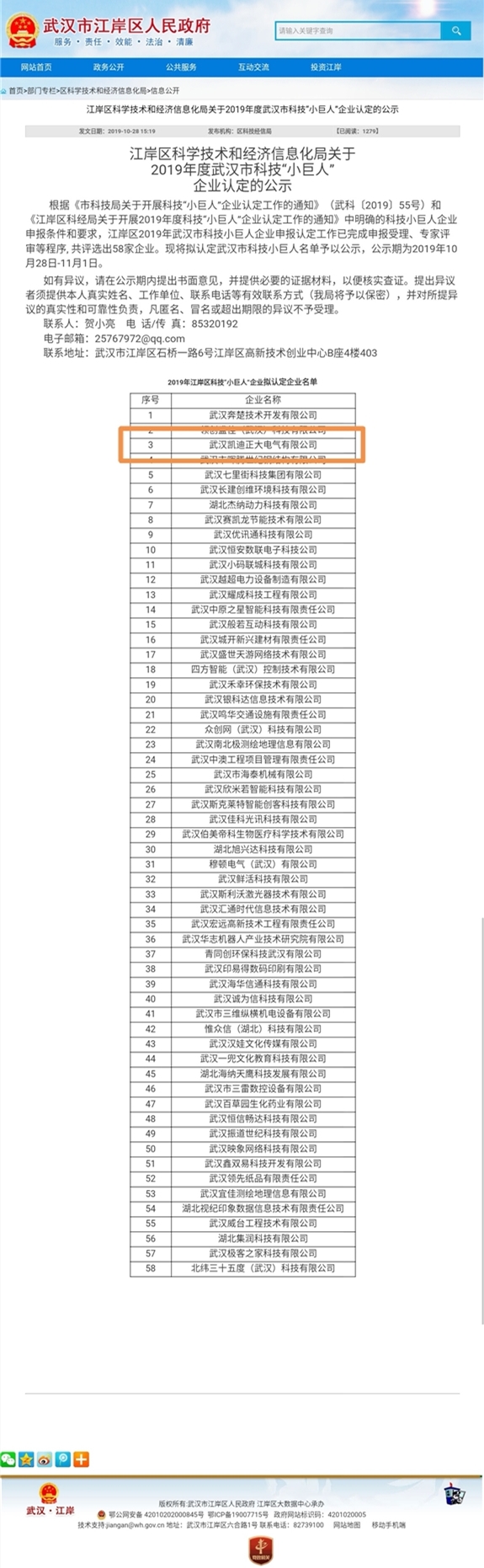 大武漢剛舉辦的世界軍人運(yùn)動(dòng)會(huì),贏(yíng)得全世界的矚目。順利并較好的閉幕,武漢凱迪正大電氣有限公司更是喜氣連連,商務(wù)部接連中標(biāo)國(guó)內(nèi)多家上市公司電氣試驗(yàn)設(shè)備的采購(gòu),便迎來(lái)江岸區(qū)科學(xué)技術(shù)和經(jīng)濟(jì)信息化局關(guān)于2019年度武漢市科技“小巨人”企業(yè)認(rèn)定的公示,武漢凱迪正大電氣有限公司成功評(píng)上武漢市科技“小巨人”企業(yè)。