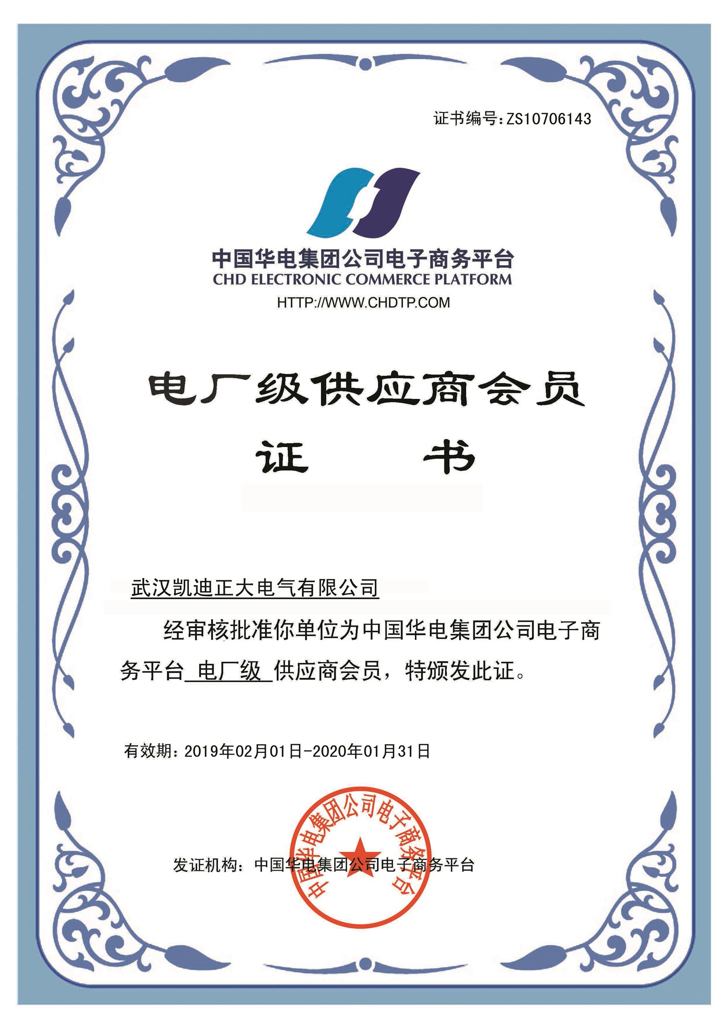 賀凱迪正大公司獲得中國(guó)華電集團(tuán)電廠級(jí)供應(yīng)商會(huì)員