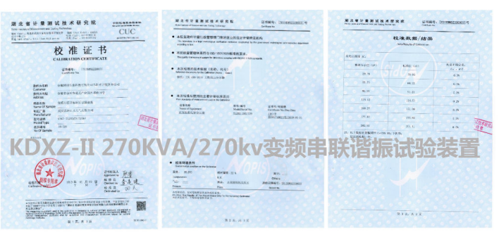 凱迪正大KDXZ-II 270KVA變頻串聯(lián)諧振試驗裝置取得專業(yè)校準證書