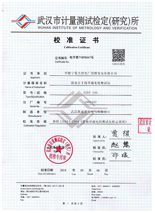 證書單位;華能寧夏大壩電廠四期發(fā)電有限公司