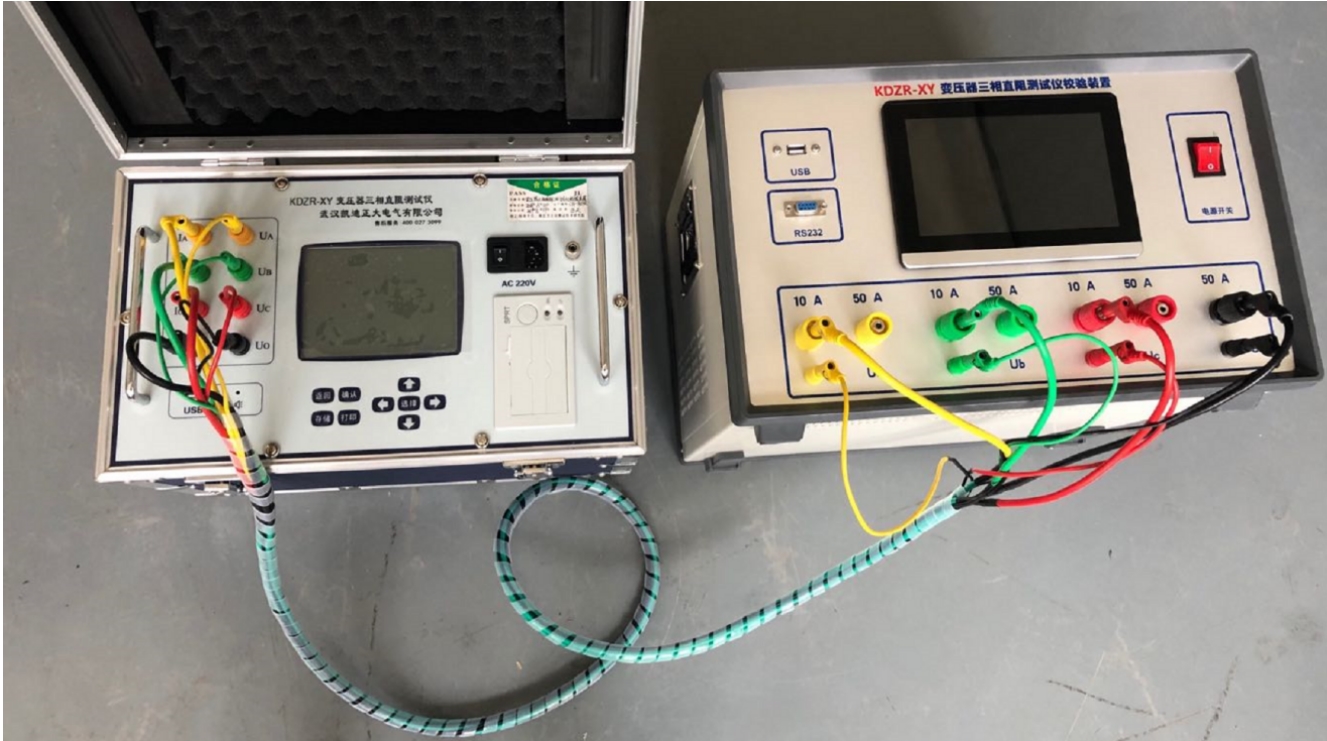 按照以上方法設(shè)置好ABC三相電阻值,等待10秒以上,便可開(kāi)始對(duì)直阻測(cè)試儀進(jìn)行校驗(yàn)。