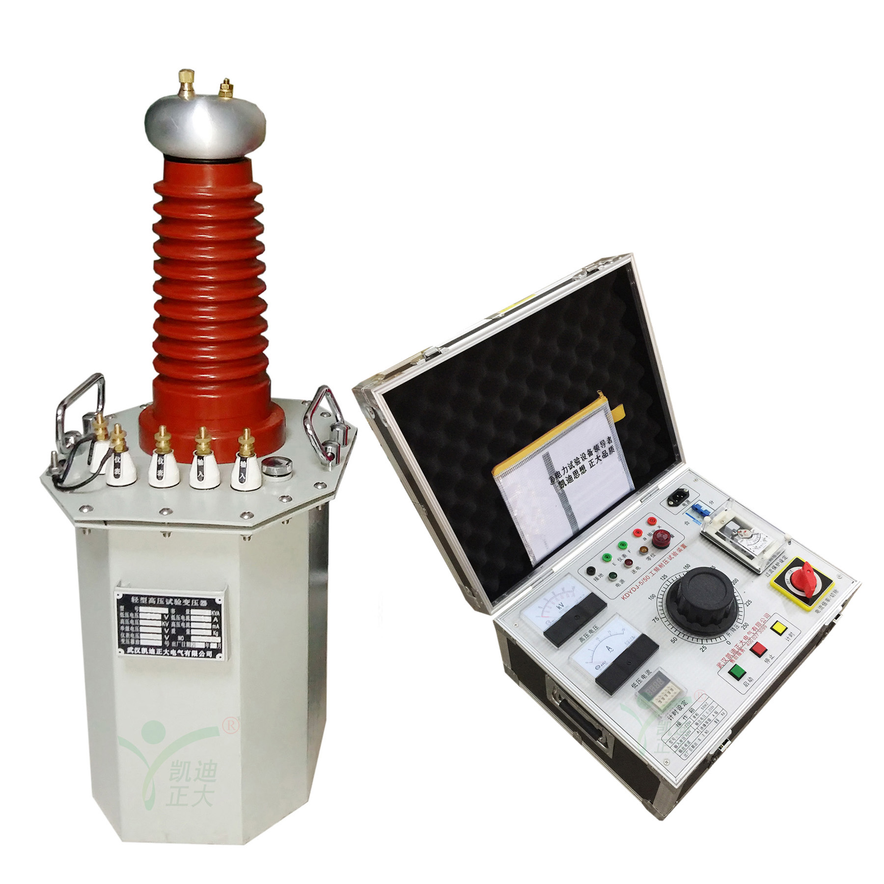 武漢凱迪正大生產(chǎn)的KDYDJ交直流工頻耐壓試驗(yàn)裝置是根據(jù)國(guó)家最新電力行業(yè)標(biāo)準(zhǔn)而設(shè)計(jì)的、性能高新的耐壓試驗(yàn)設(shè)備,用于對(duì)各種電器產(chǎn)品、電氣元件、絕緣材料等進(jìn)行規(guī)定電壓下的絕緣強(qiáng)度試驗(yàn),以考核產(chǎn)品的絕緣水平,發(fā)現(xiàn)被試品的絕緣缺陷,衡量過電壓的能力,它能檢查出那些危險(xiǎn)性較大的集中缺陷,對(duì)判斷電力設(shè)備能否繼續(xù)參加運(yùn)行具有決定性作用,是保證設(shè)備絕緣水平、避免發(fā)生絕緣事故的重要選擇。