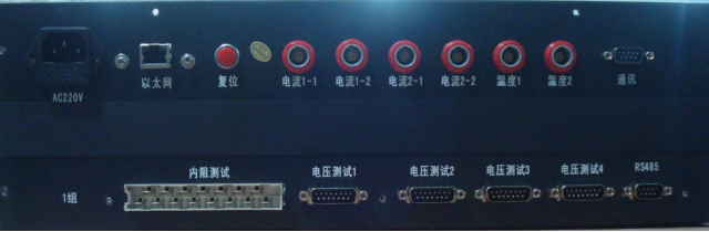 (4) 兩組電流測試接口 (5) 兩個(gè)溫度測試接口 (6) 通訊接口