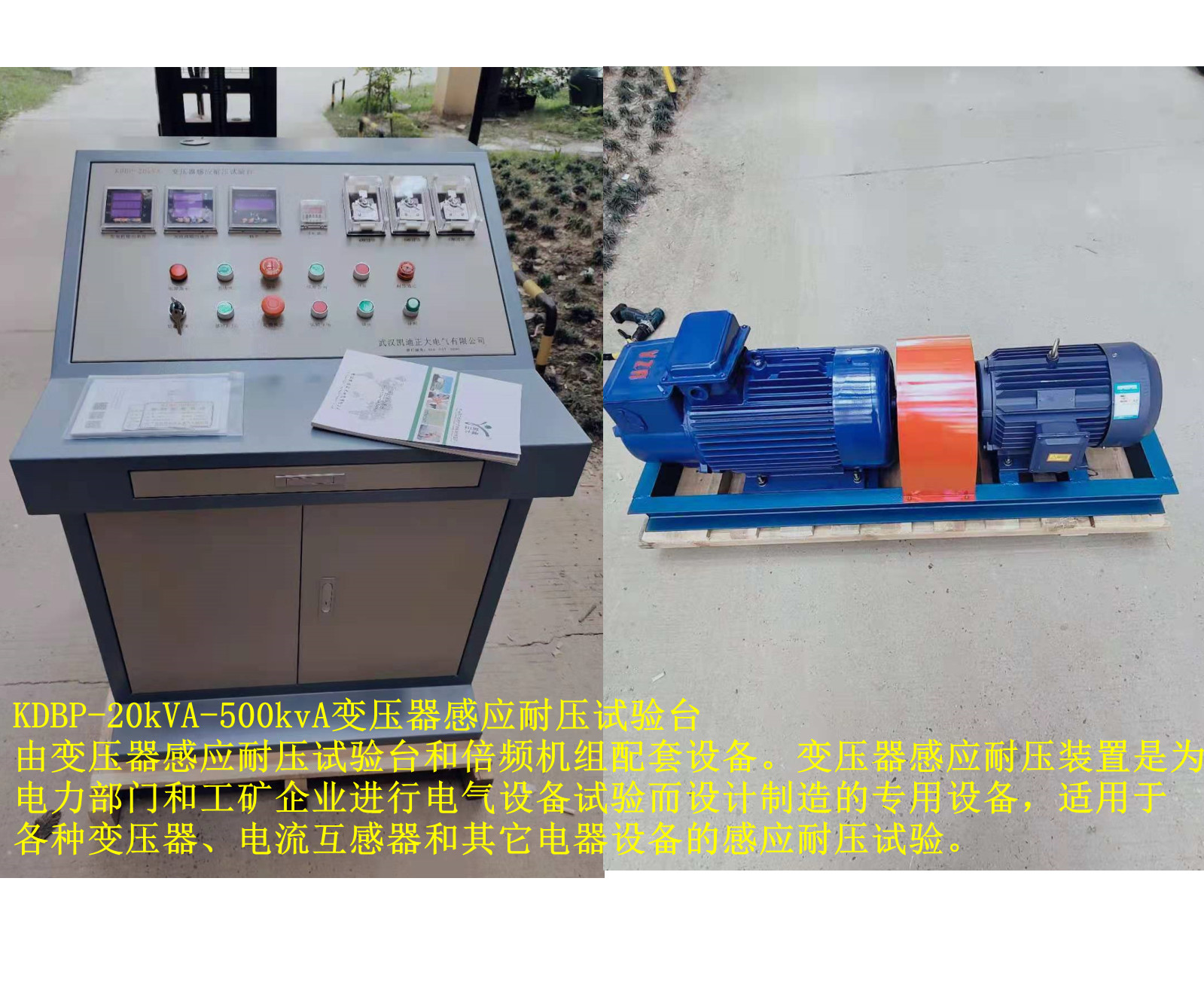 這次采購(gòu)的KDBP-20kVA變壓器感應(yīng)耐壓試驗(yàn)臺(tái)由變壓器感應(yīng)耐壓試驗(yàn)臺(tái)和倍頻機(jī)組配套設(shè)備。變壓器感應(yīng)耐壓裝置是為生產(chǎn)電力部門定制的各種變壓器的感應(yīng)耐壓試驗(yàn)出廠檢測(cè),倍頻感應(yīng)機(jī)組還可以給工礦企業(yè)進(jìn)行電氣設(shè)備試驗(yàn)而設(shè)計(jì)制造的專用設(shè)備,適用于各種變壓器、電流互感器和其它電器設(shè)備的感應(yīng)耐壓試驗(yàn)。