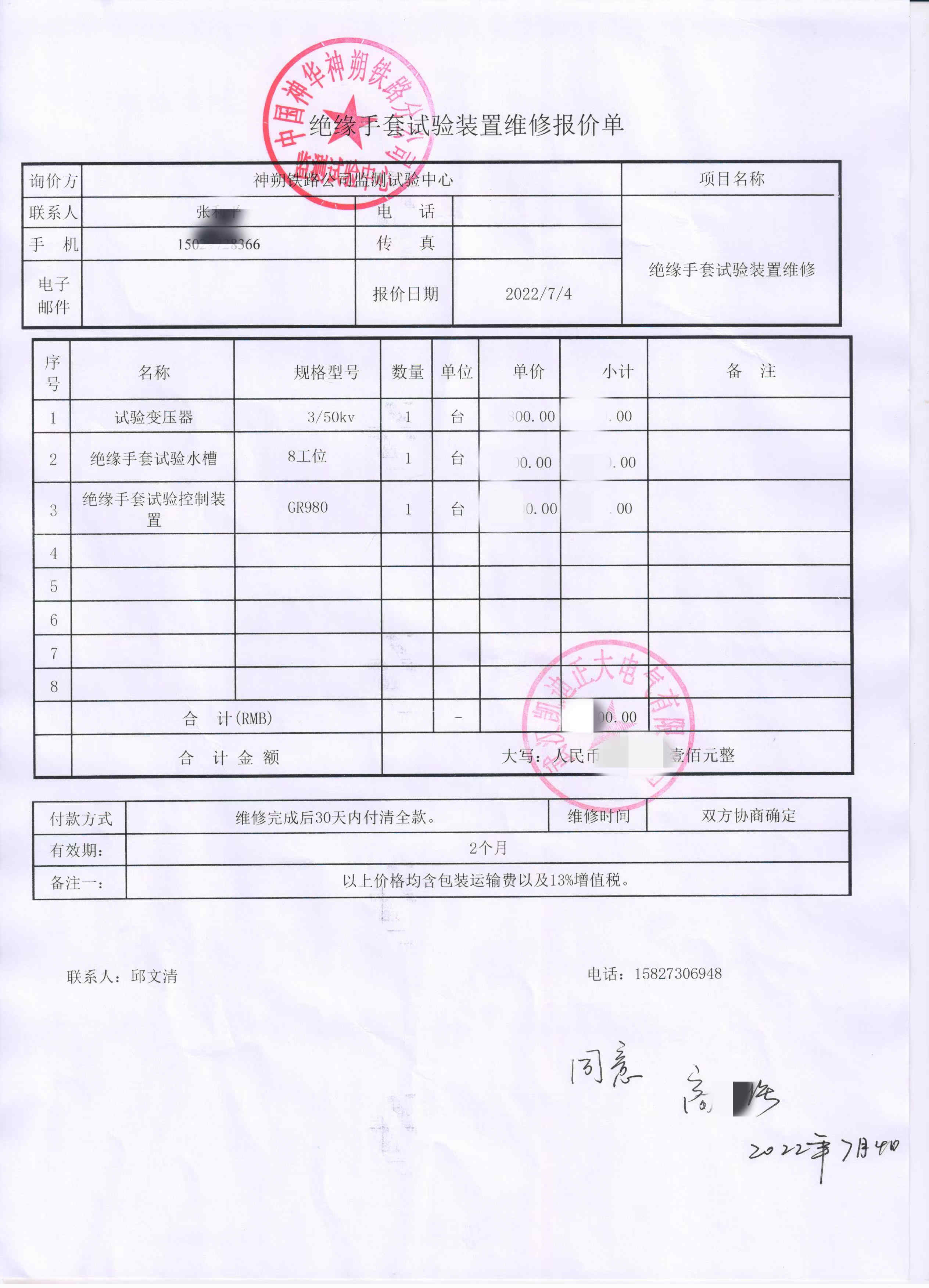 中國神華神朔鐵路陜西榆林分公司檢測(cè)試驗(yàn)中心創(chuàng)建專業(yè)化、規(guī)范化電力安全工器具預(yù)防性試驗(yàn)中心,于2019年6月采購我司GR980絕緣手套試驗(yàn)系統(tǒng),包含8工位絕緣手套靴試驗(yàn)水槽等。根據(jù)國家電網(wǎng)公司關(guān)于印發(fā)《國家電網(wǎng)公司質(zhì)量監(jiān)督工作規(guī)定》和《國家電網(wǎng)公司電力安全工器具管理規(guī)定》的通知進(jìn)行采購物資。