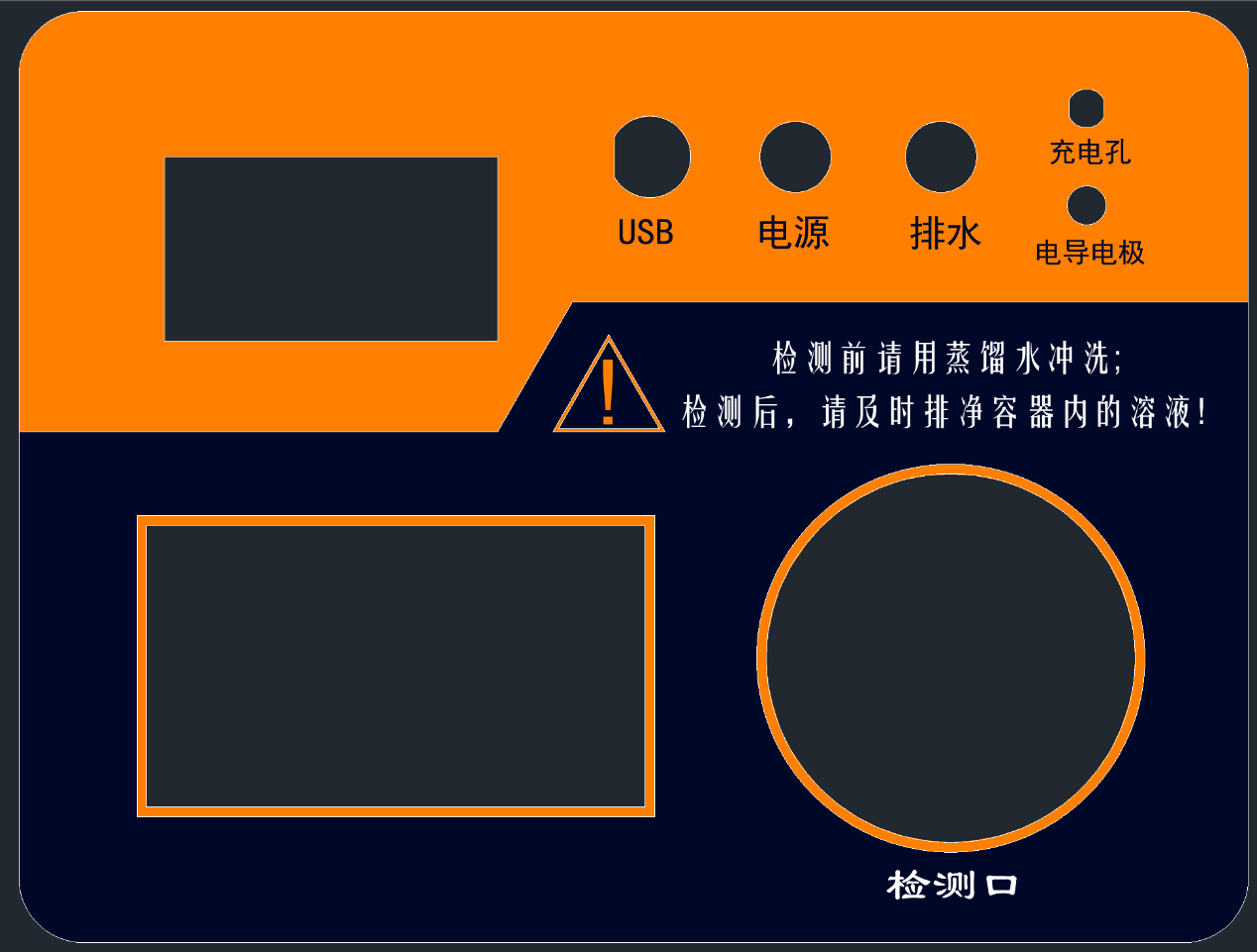 將排水管插入排水孔,按下“排水”按鍵即可將被測(cè)溶液從排水管排出,待被測(cè)溶液全部排出后,再加入適量蒸餾水,進(jìn)行清洗,可反復(fù)沖洗幾遍,直到容器內(nèi)沖洗干凈并排盡所有蒸餾水后,恢復(fù)“排水”按鍵,拔出排水管。