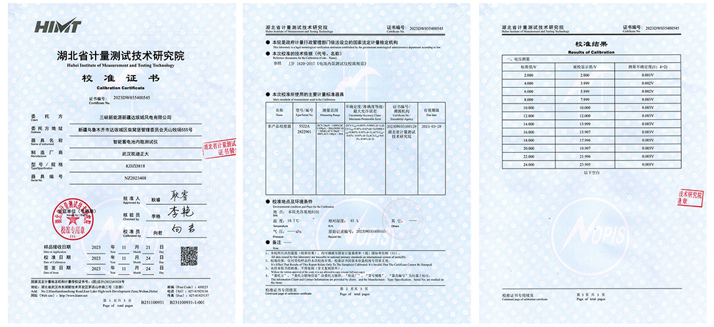 2023年11月24日三峽新能源新疆達(dá)坂城風(fēng)電有限公司采購(gòu)我司的KDZD818智能蓄電池內(nèi)阻測(cè)試儀,順利通過湖北省計(jì)量測(cè)試技術(shù)研究院的校準(zhǔn)。再次證明了我們的產(chǎn)品質(zhì)量。這是喜訊進(jìn)一步提升我們公司的品牌信譽(yù),使更多的客戶和合作伙伴對(duì)我們公司產(chǎn)生信任和認(rèn)可。