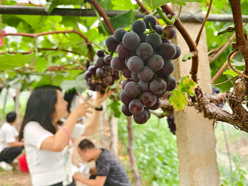 聚餐結(jié)束后還有采摘葡萄活動等待著大家,雖然夏日的陽光炙熱但大家的熱情卻絲毫未減。在雷總的帶領(lǐng)下大家手持籃筐,滿懷期待地踏入了郁郁蔥蔥的葡萄園。