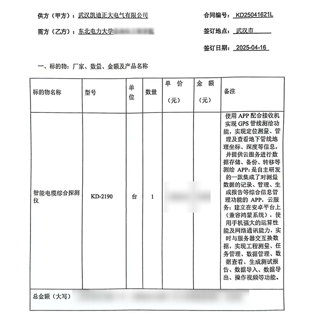 近日,東北電力大學(xué)經(jīng)過(guò)嚴(yán)格篩選與評(píng)估,最終選擇了武漢凱迪正大電氣的KD-2190智能電纜綜合探測(cè)儀。此次采購(gòu)不僅彰顯了東北電力大學(xué)對(duì)武漢凱迪正大電氣品牌與技術(shù)的信賴,更標(biāo)志著KD-2190智能電纜綜合探測(cè)儀可靠的性能和質(zhì)量。