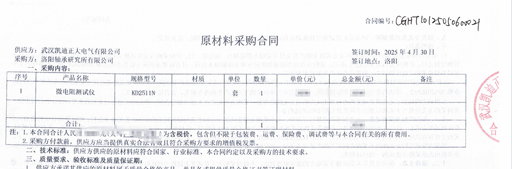洛陽軸承研究所有限公司對設(shè)備的選擇秉持著高標準、嚴要求的原則。在決定采購KD2511N微電阻測試儀前,該公司進行了詳盡的市場調(diào)研與產(chǎn)品對比。武漢凱迪正大以其專業(yè)的技術(shù)團隊、完善的售后服務(wù)以及眾多成功案例,贏得了客戶的信賴。
