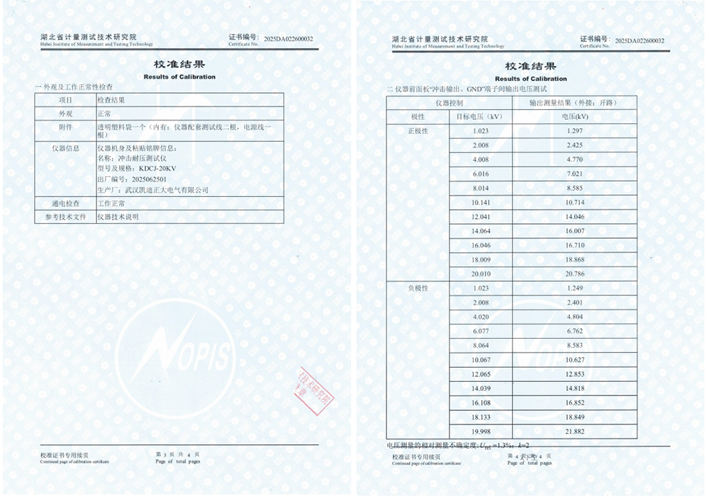 KDCJ-20kV沖擊耐壓測試儀通過校準