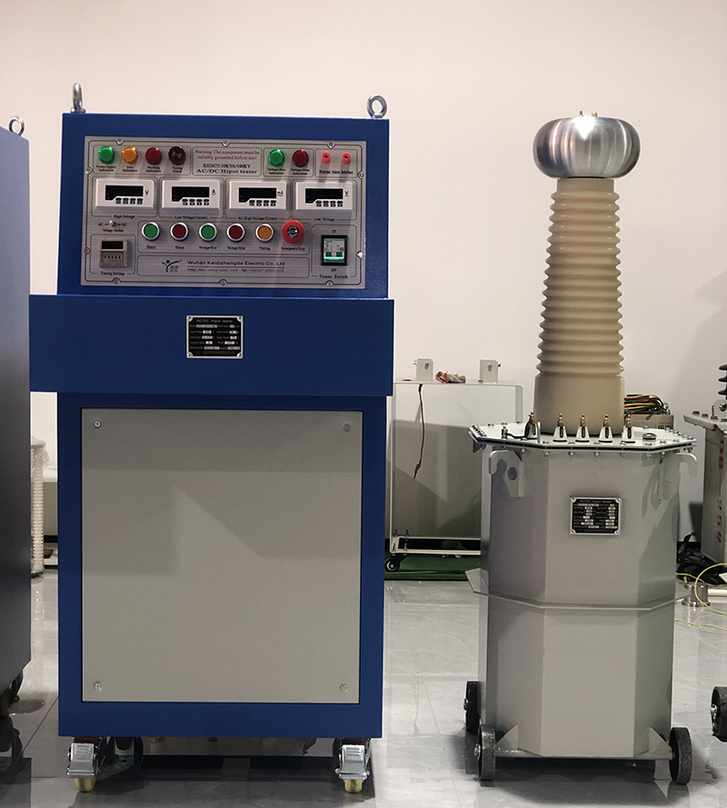 KD2675產(chǎn)品介紹與應用KD2675 30kVA/100kV交直流工頻耐壓測試裝置是一種高性能的耐壓試驗設(shè)備,主要用于電力電纜、電氣設(shè)備及各類線纜的絕緣強度測試。該設(shè)備采用油浸式試驗變壓器結(jié)構(gòu),具有輸出穩(wěn)定、調(diào)節(jié)方便、安全可靠等特點,廣泛應用于電力行業(yè)、電纜制造廠、第三方檢測機構(gòu)及科研單位。